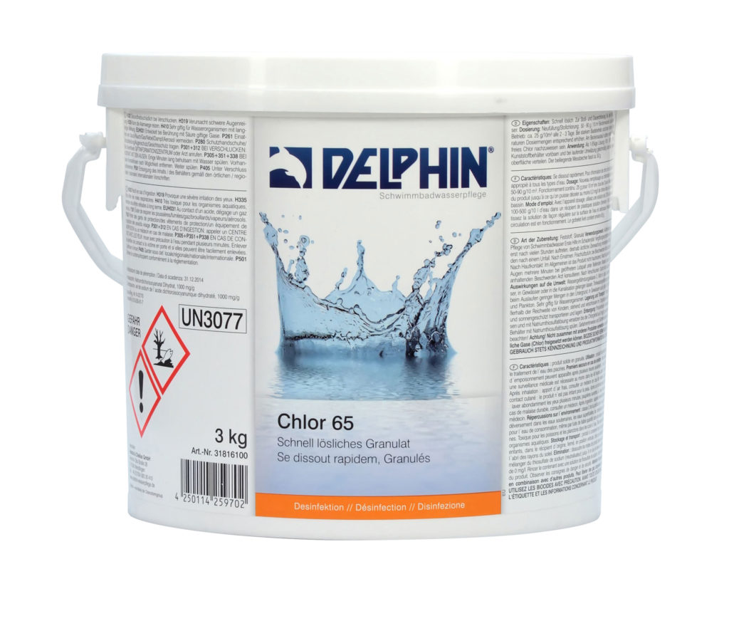 Delphin bietet ein vielfältiges Sortiment an chlorhaltigen und chlorfreien Produkten. Die Produkte des deutschen Herstellers garantieren eine effektive Hygiene und eine hohe Qualität des Schwimmbadwassers.