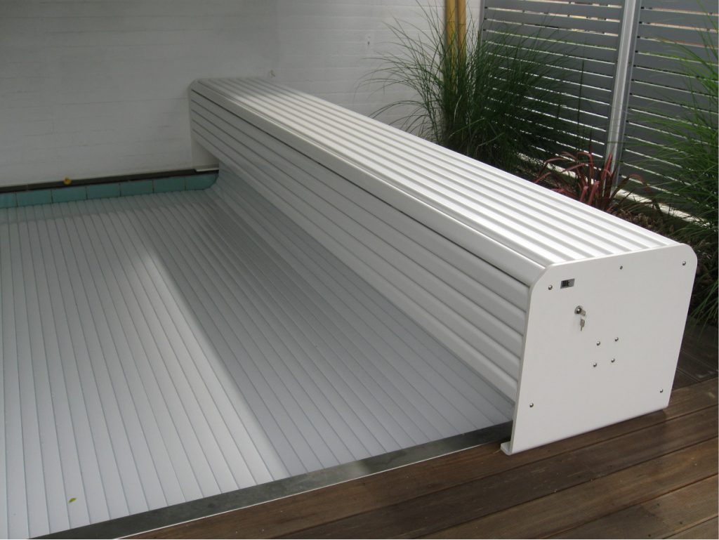 MKT shutter profiles are made of rigid PVC or polycarbonate, which are heat-welded in a special process that ensures their air and water tightness, giving them buoyancy. These materials are resistant to all chemicals and water treatment products used in pools. The slightly concave profiles prevent water from accumulating on the surface of the shutter.